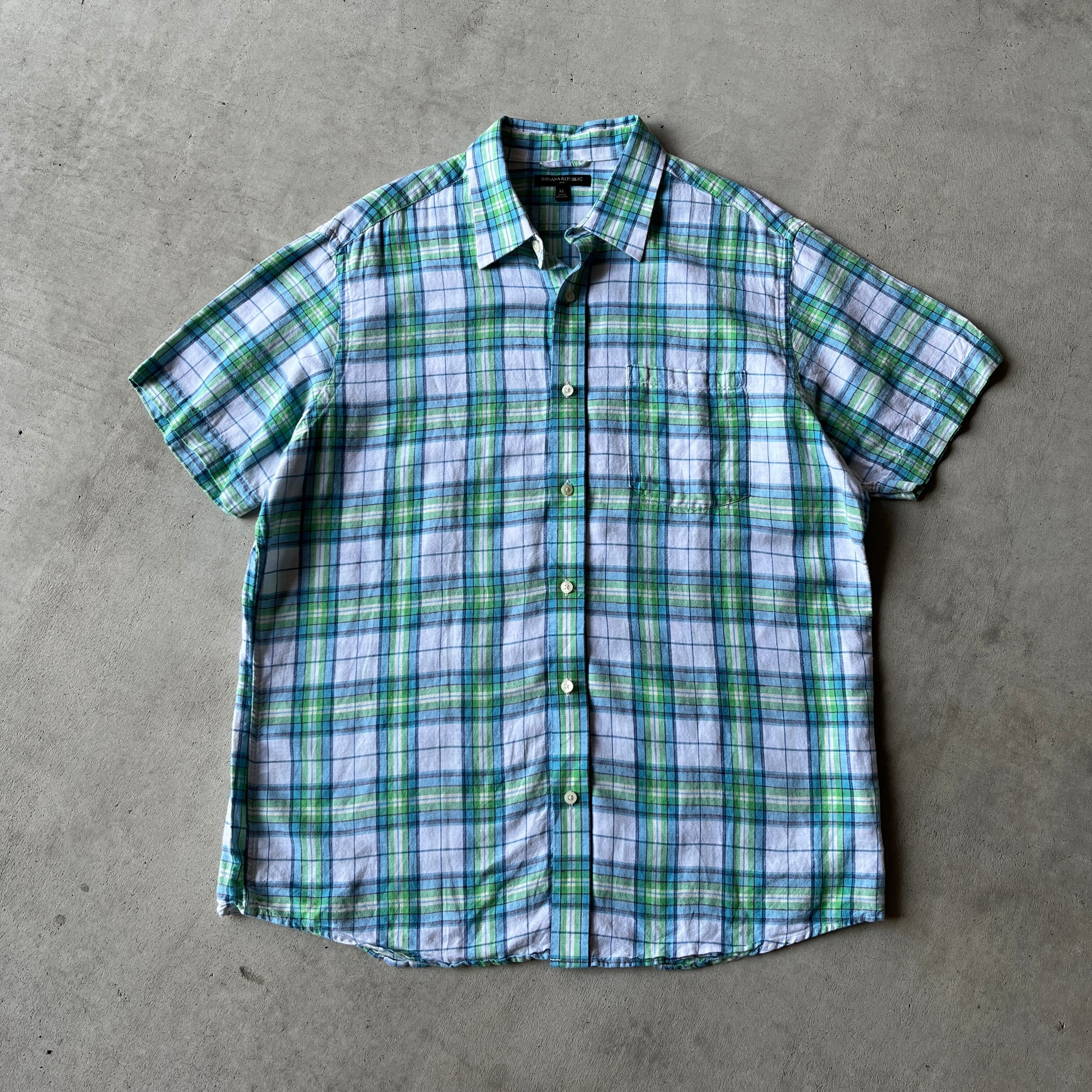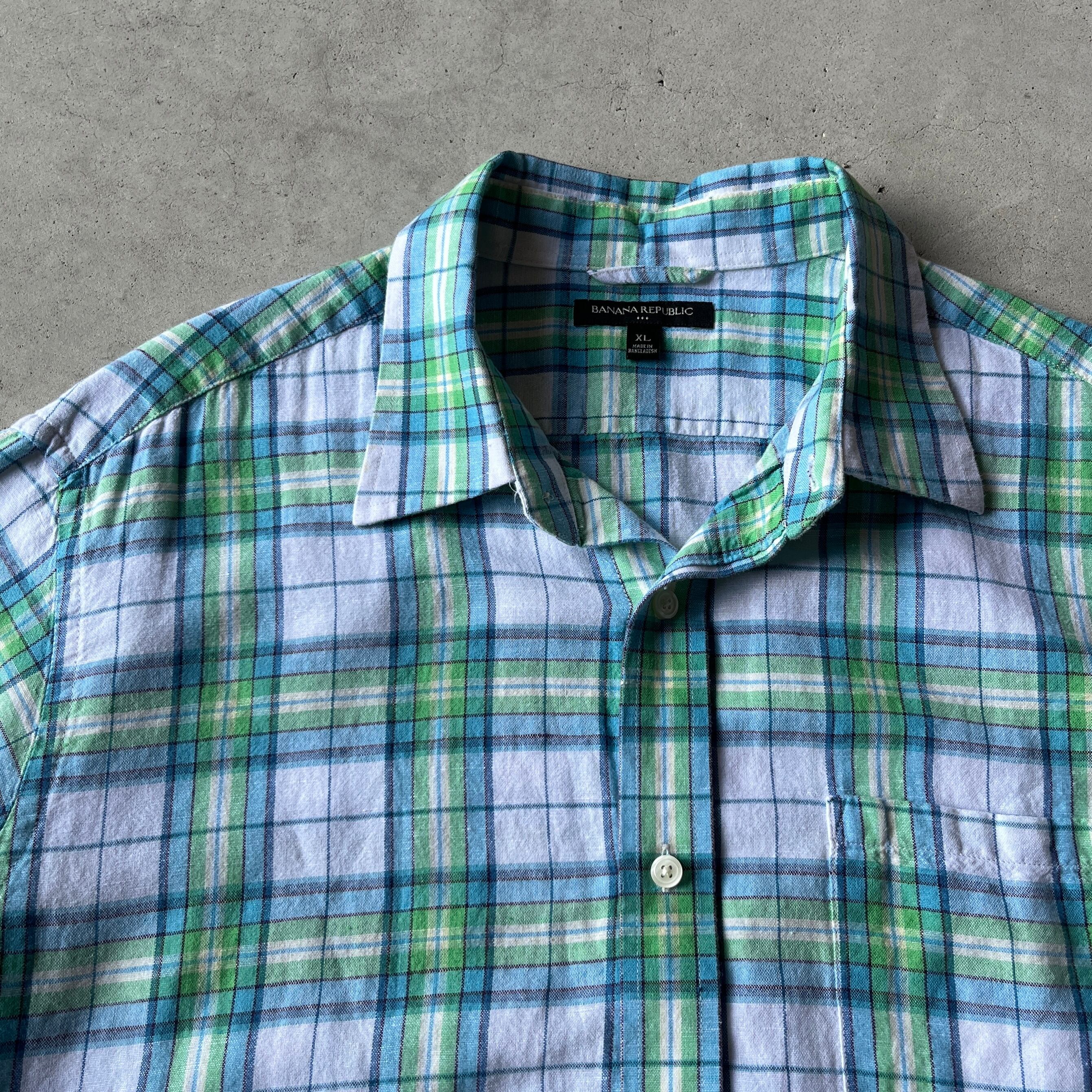2000s -BANANA REPUBRIC- linen check shirt / linen 100% / レギュラーカラー /