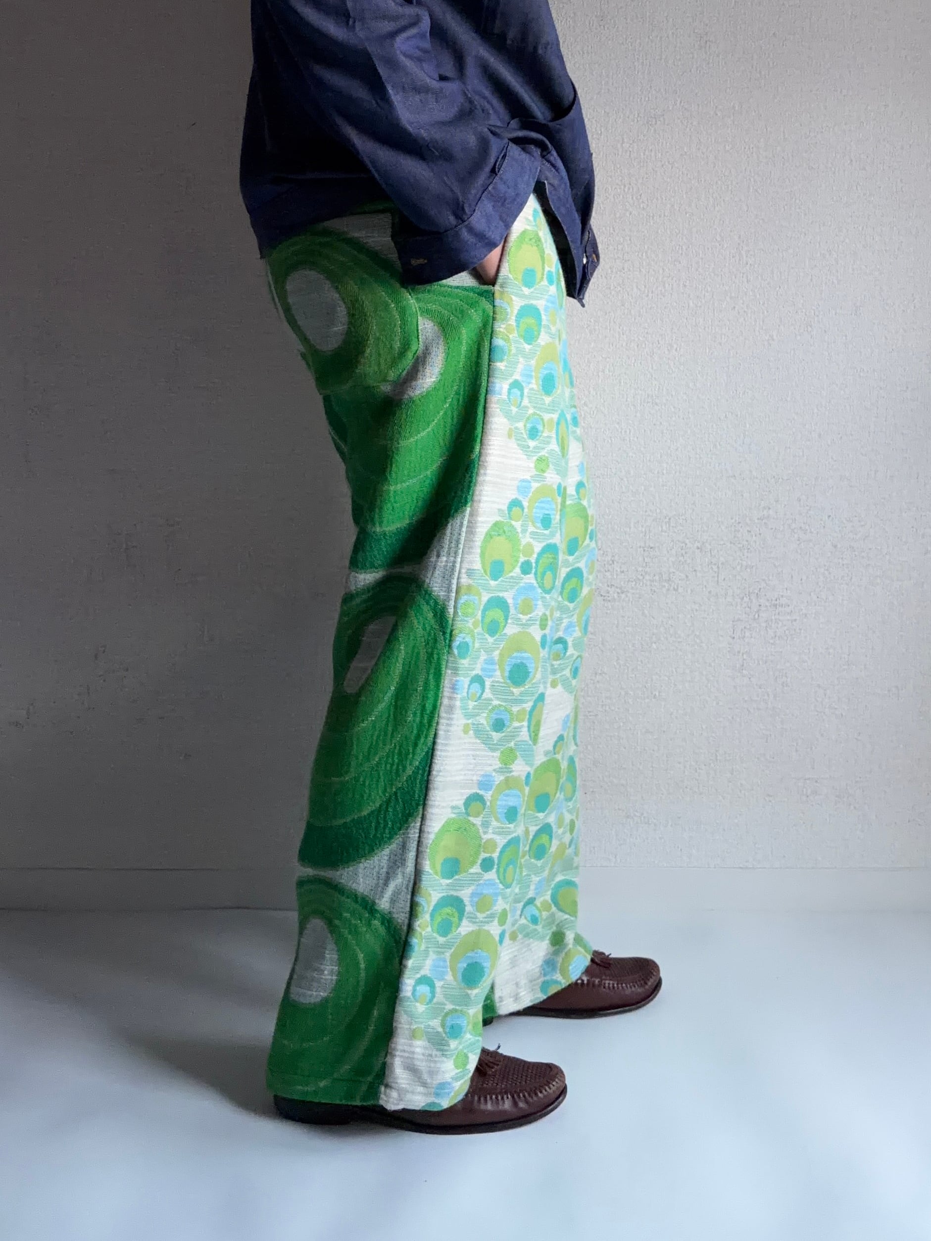 ☘️| 1970s | “ nerd ORIGINAL pants “ Vintage curtain 再構築 wide easy pants / 70s カーテンラグ再構築 / イージーワイドストレート◎ / 当店オリジナルリメイク品◎