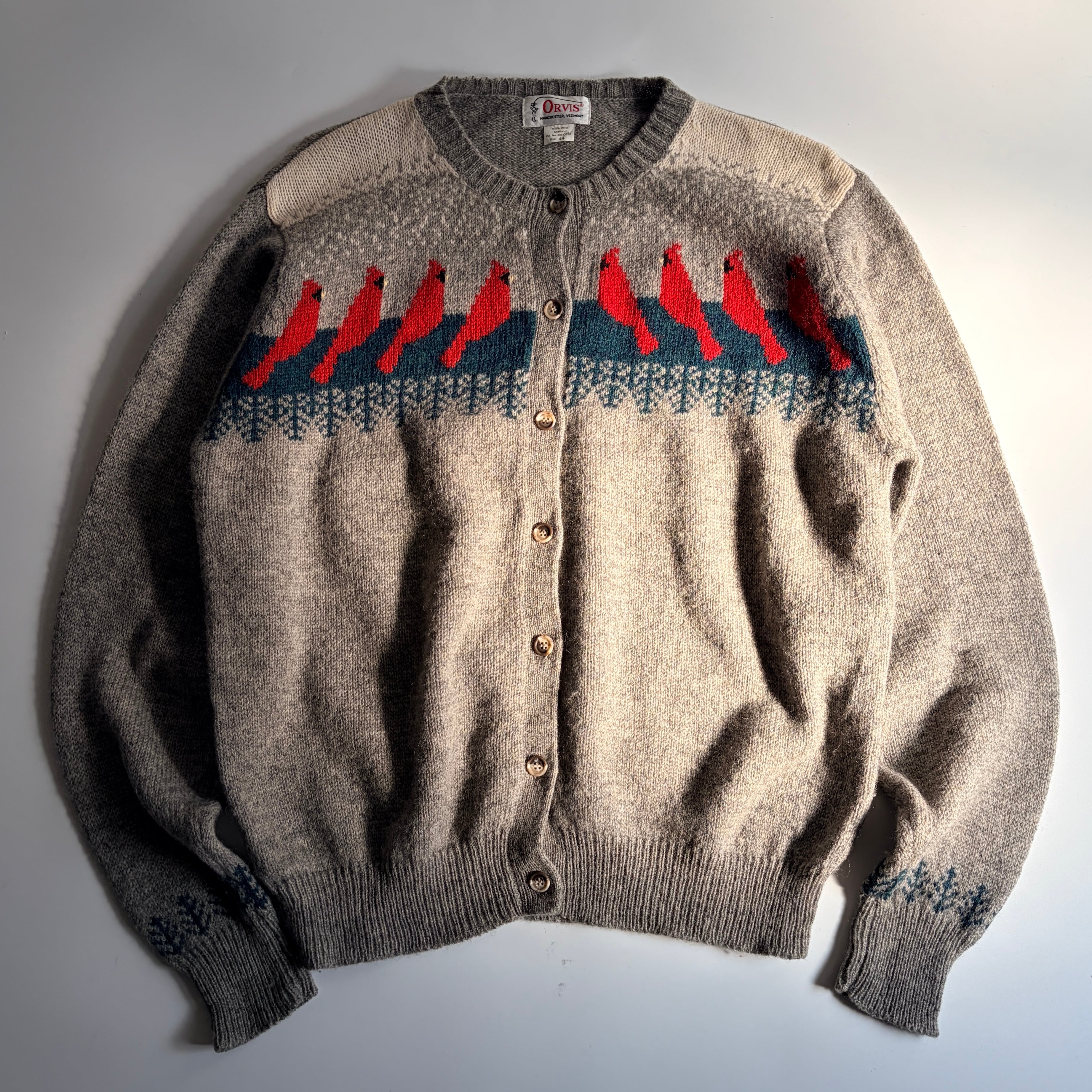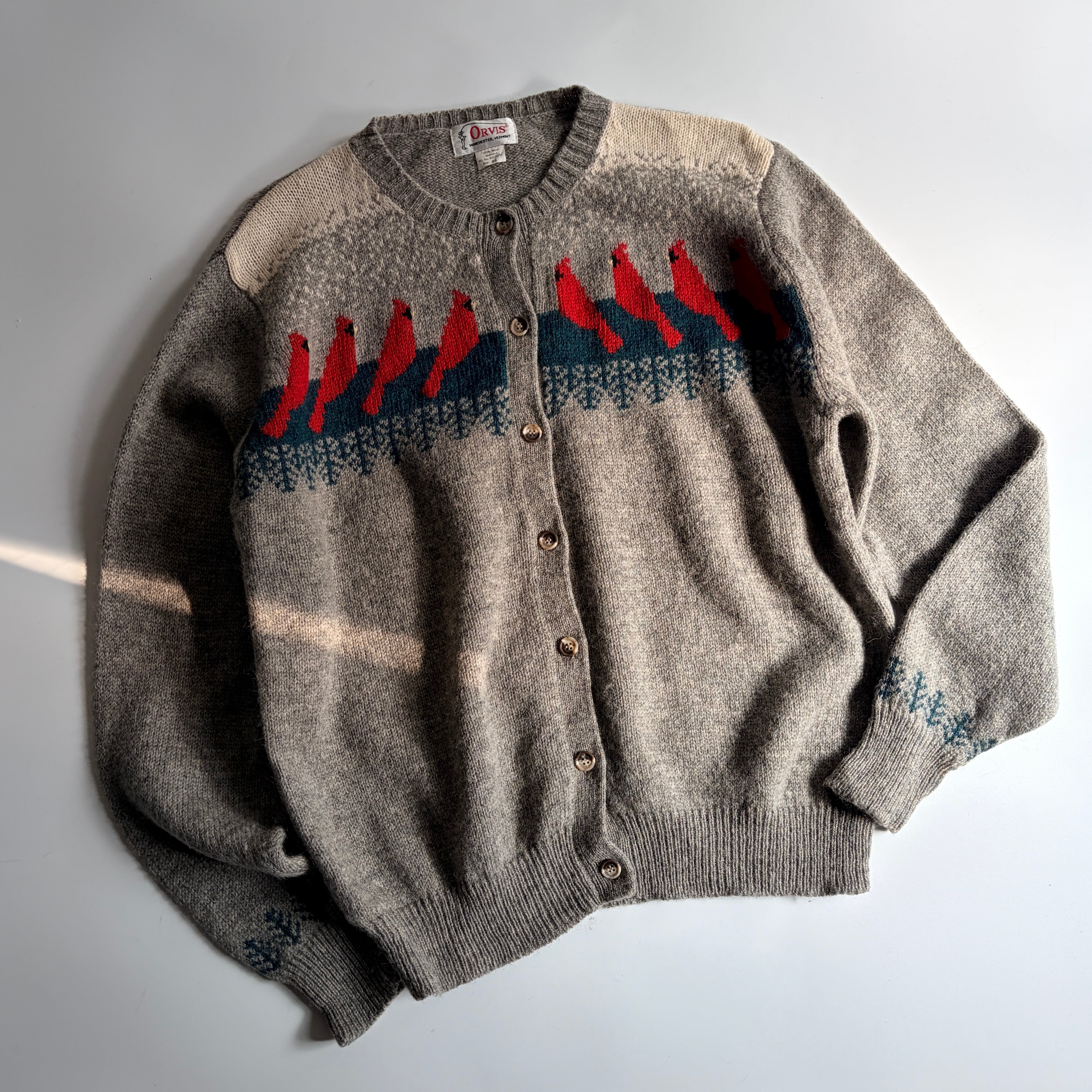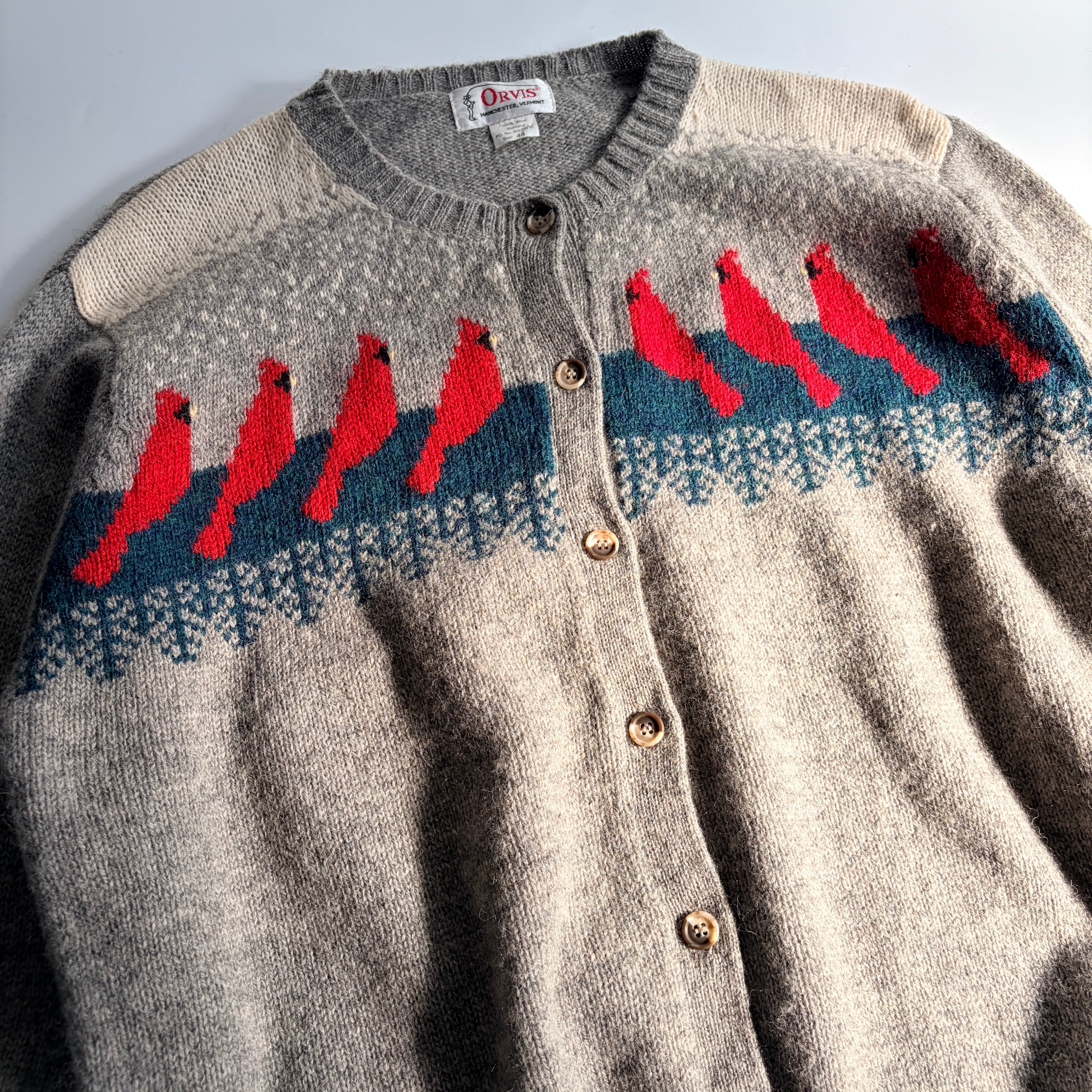 | 80s~| “ ORVIS “ bird pattern cardigan / 100%シェットランドウール◎ / バード柄◎ / フルボタン◎