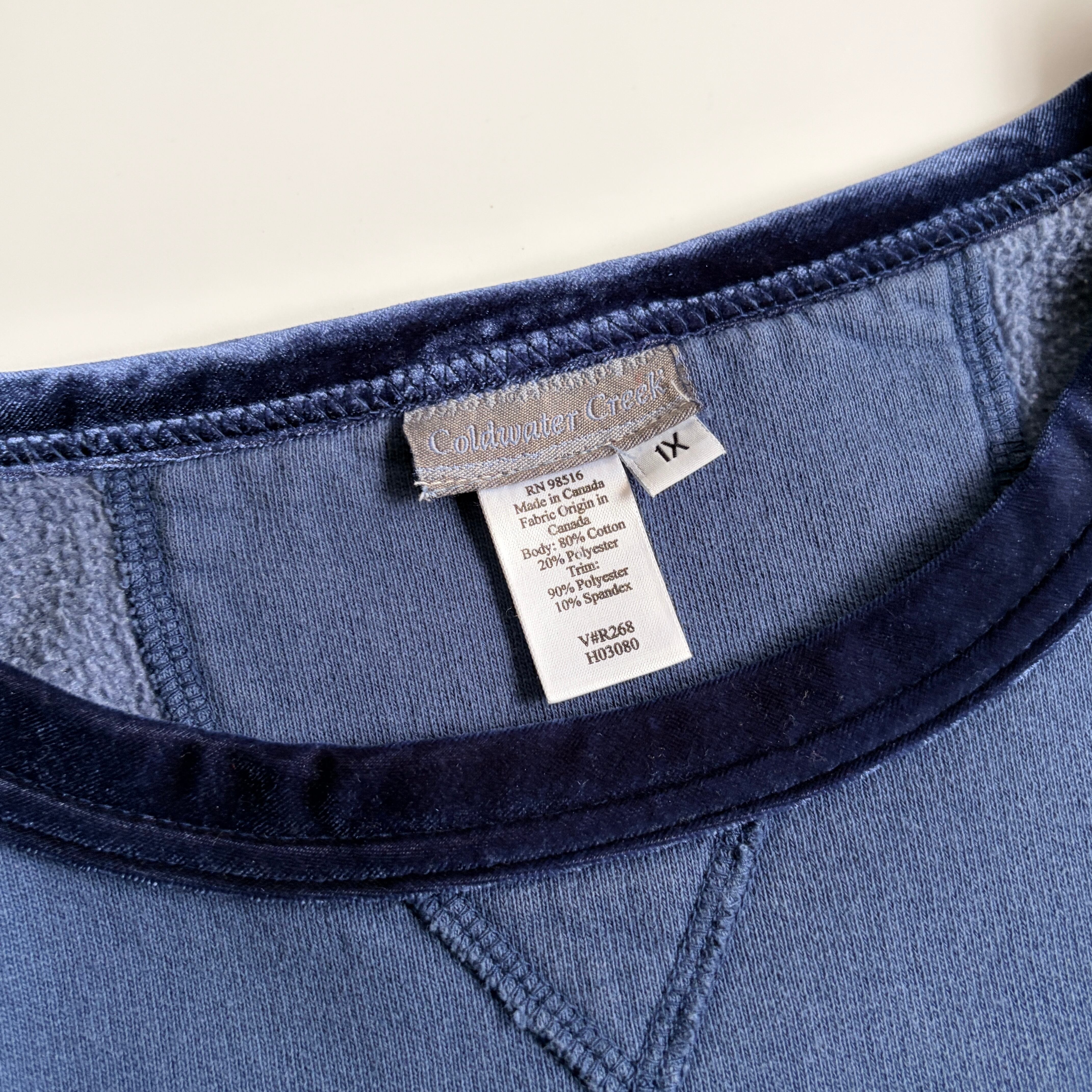 | 90s~| Coldwater Creek “ベロア切り替え”スウェット / サンフェード◎ / “前V”◎ / リブ無し◎