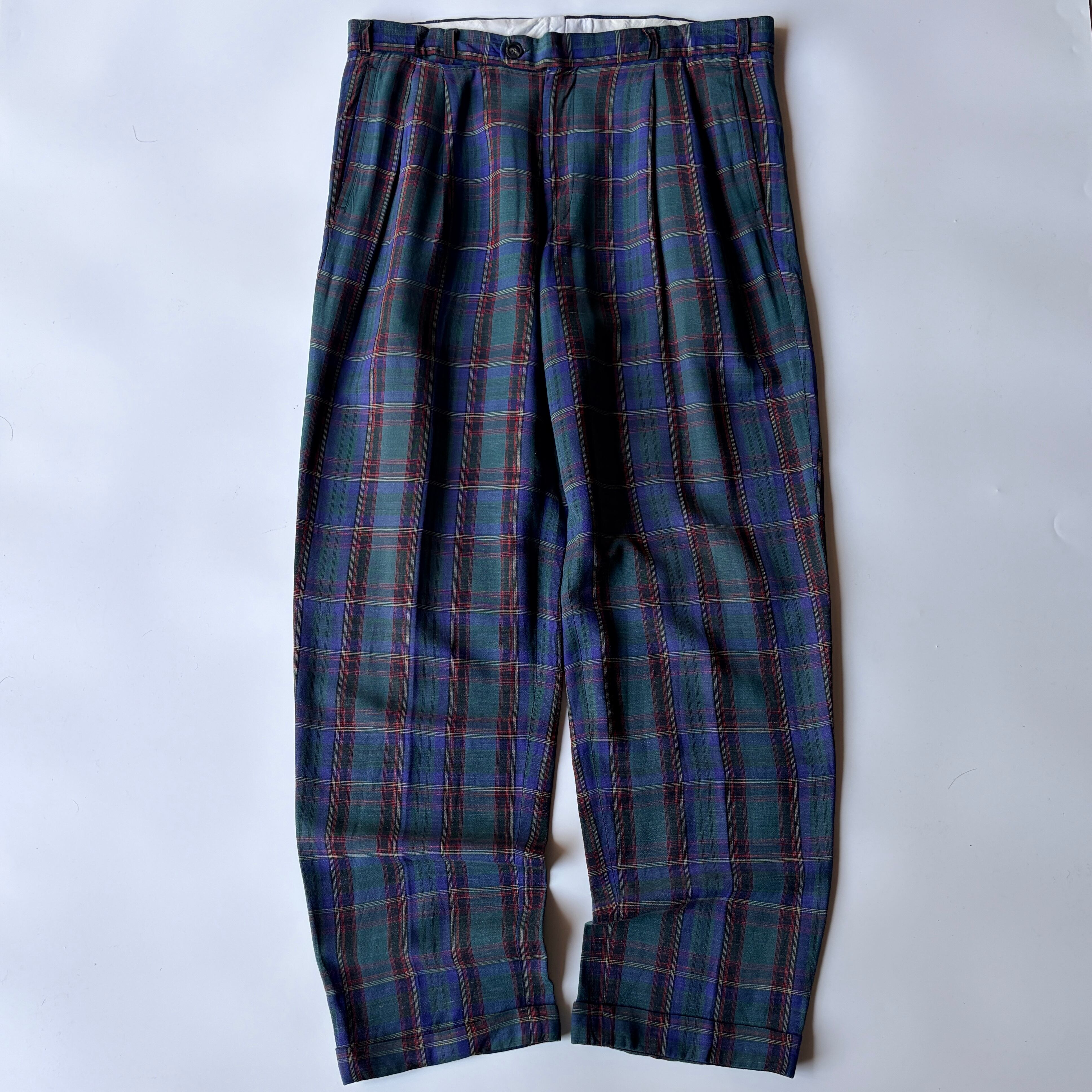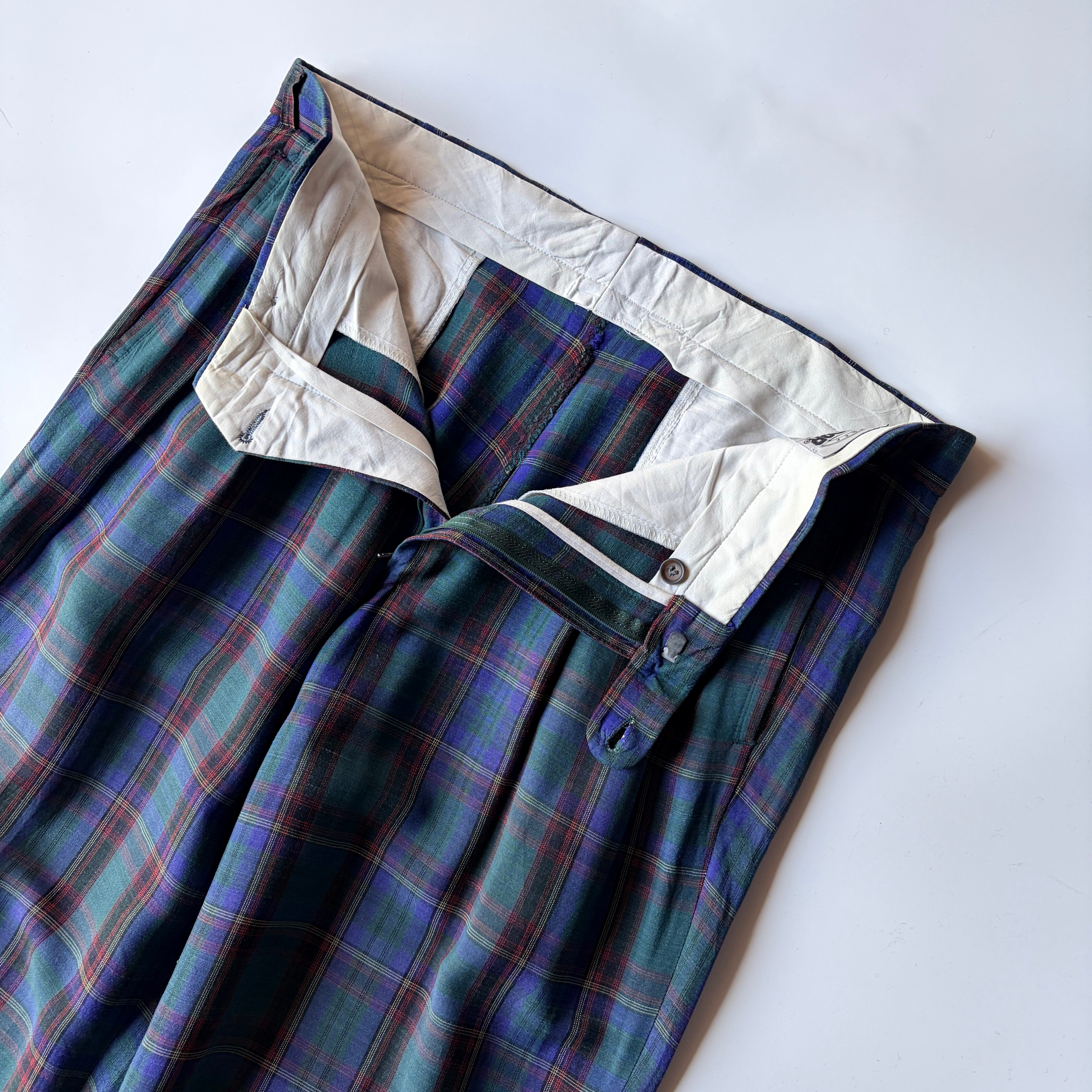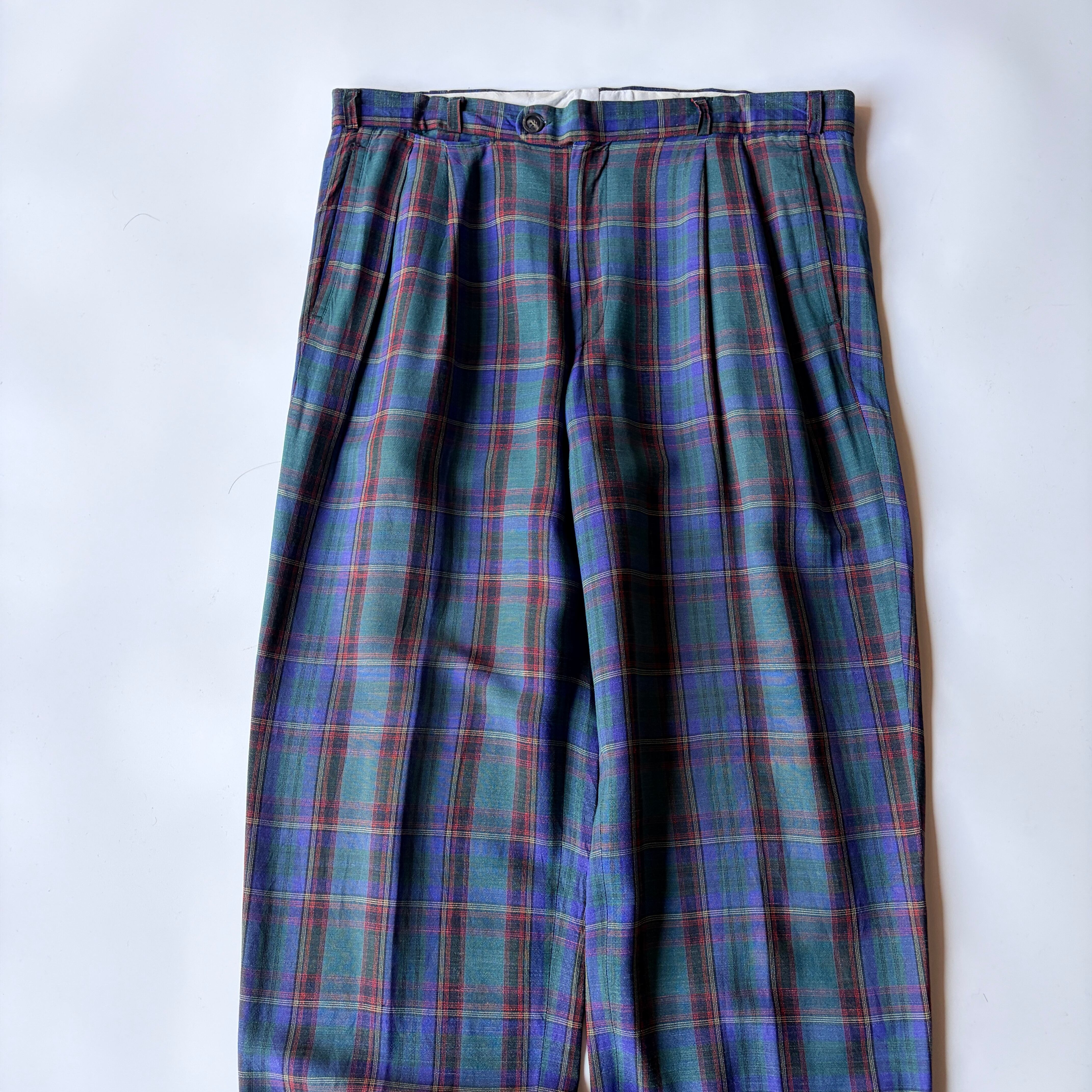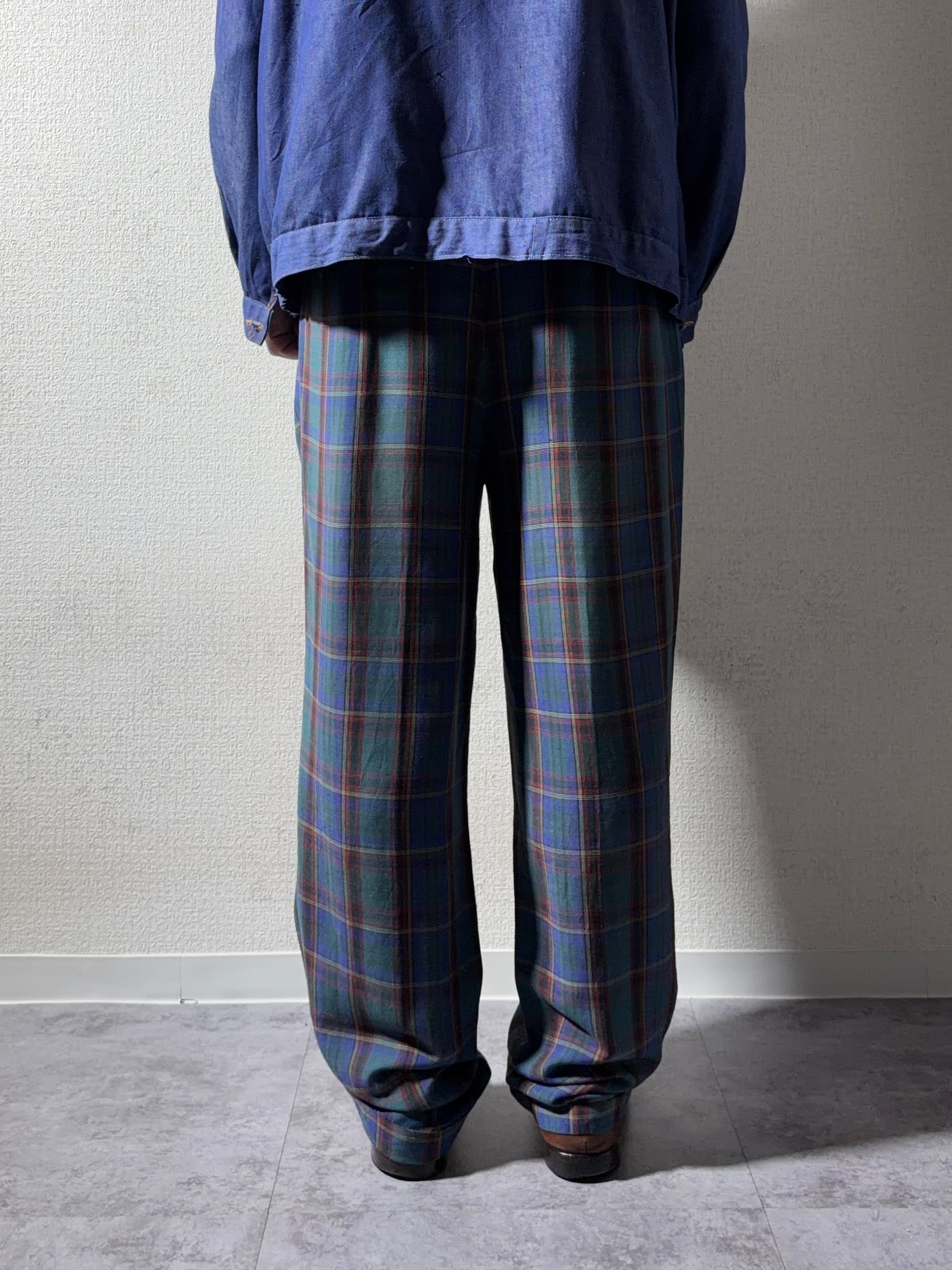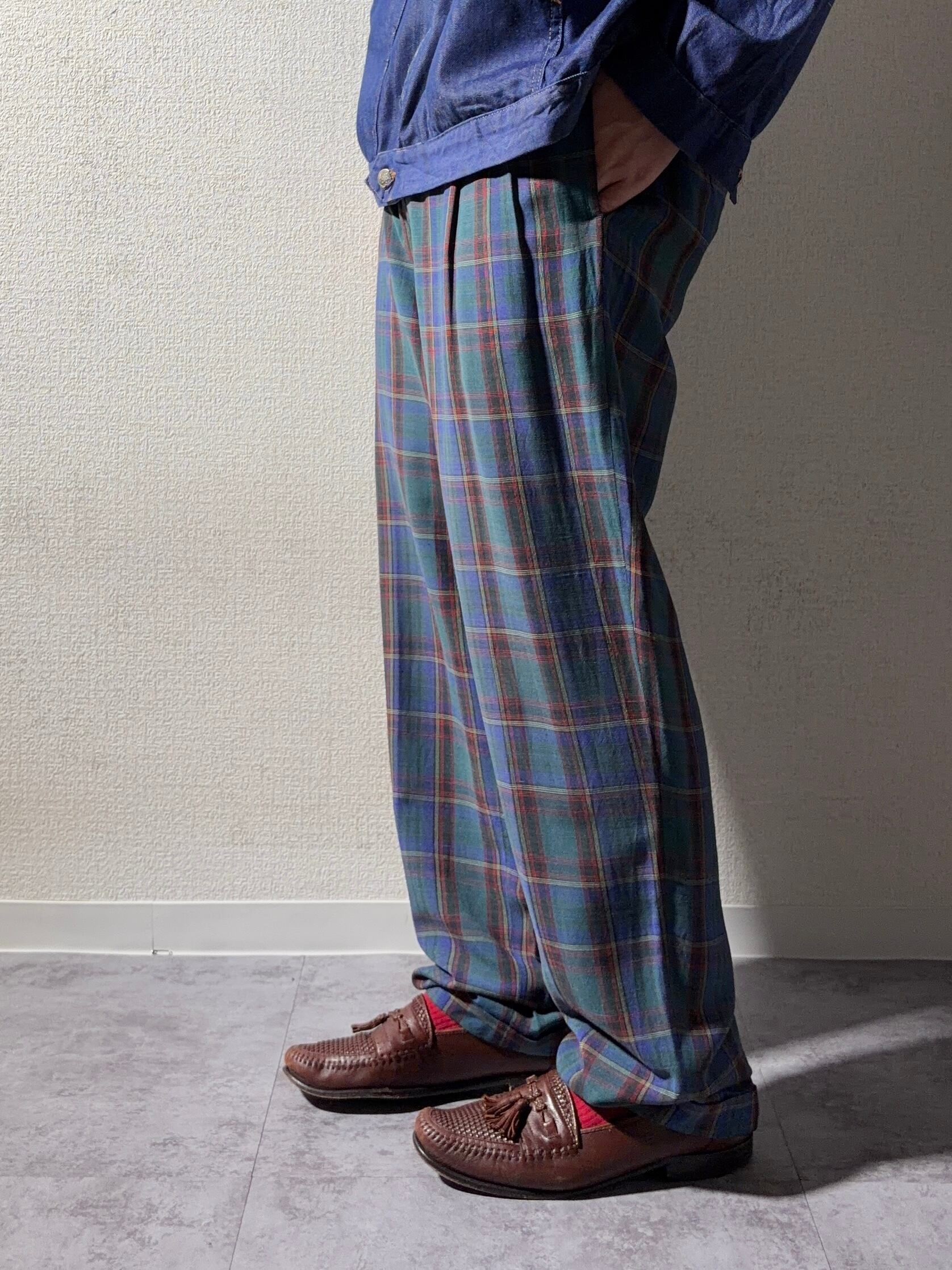 | 80s | PICDOR “レーヨンチェックスラックス” / ユーロ◎ / ブラックウォッチ風◎ / レーヨン✖︎リネン◎ / OPTI Zip