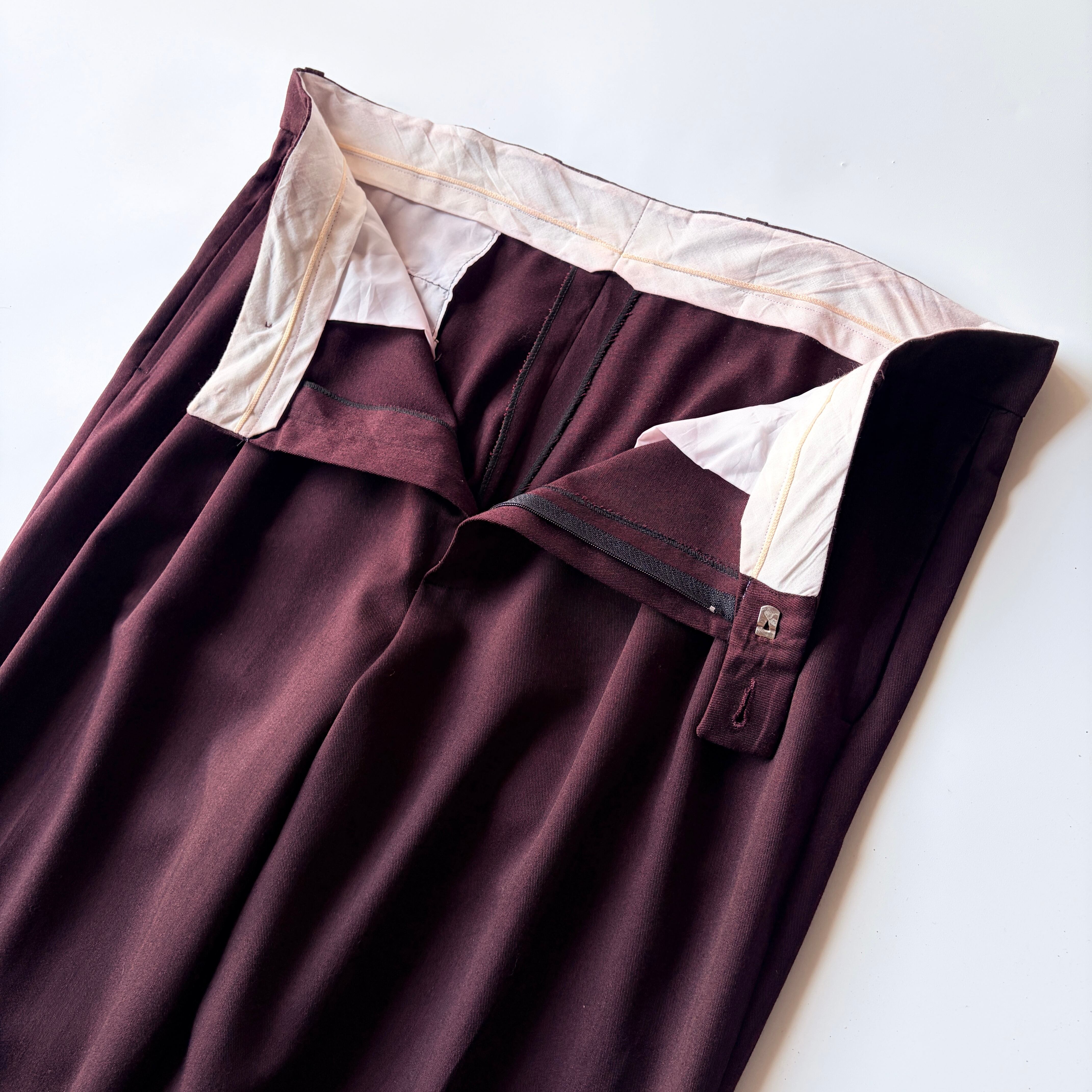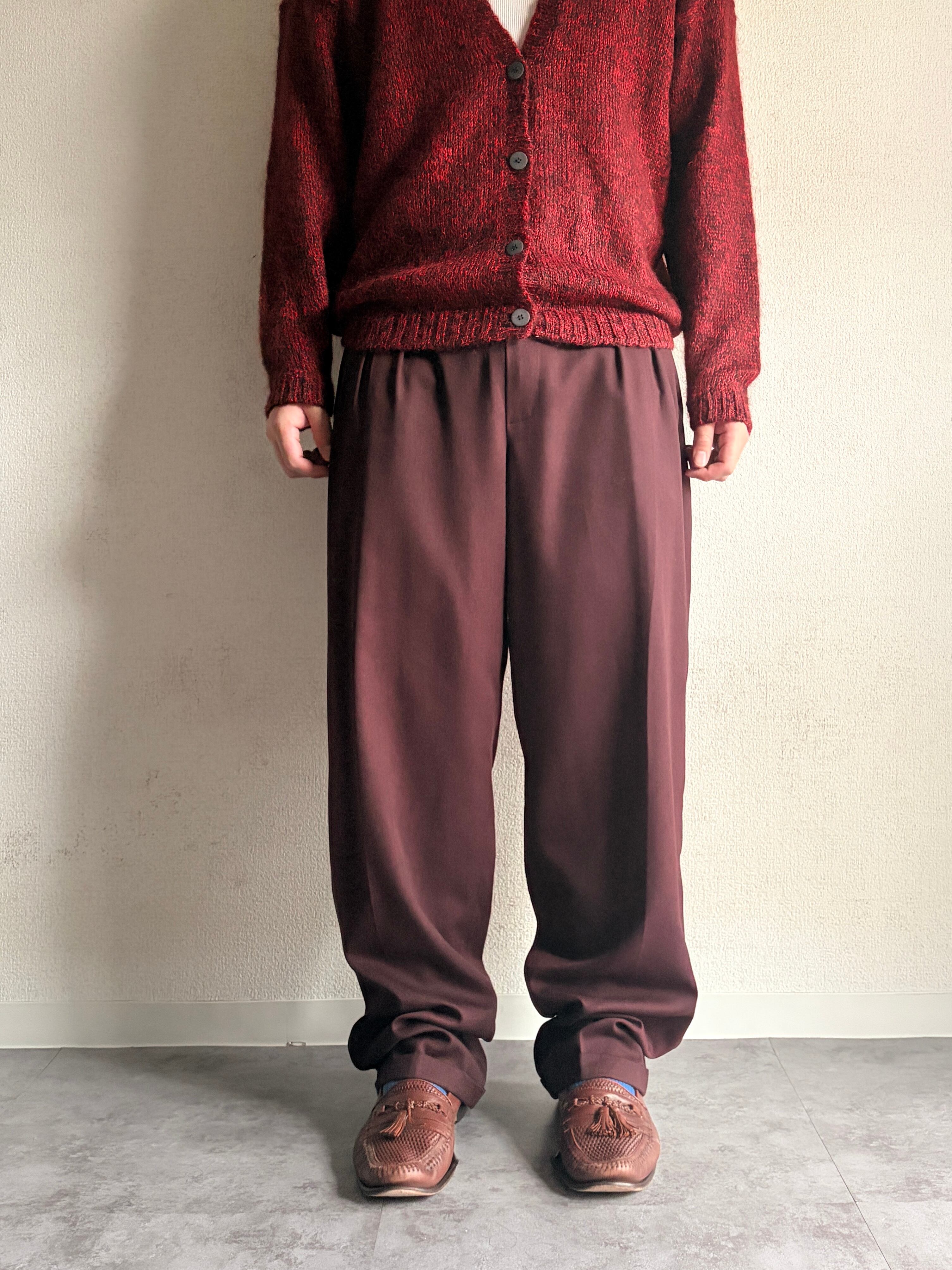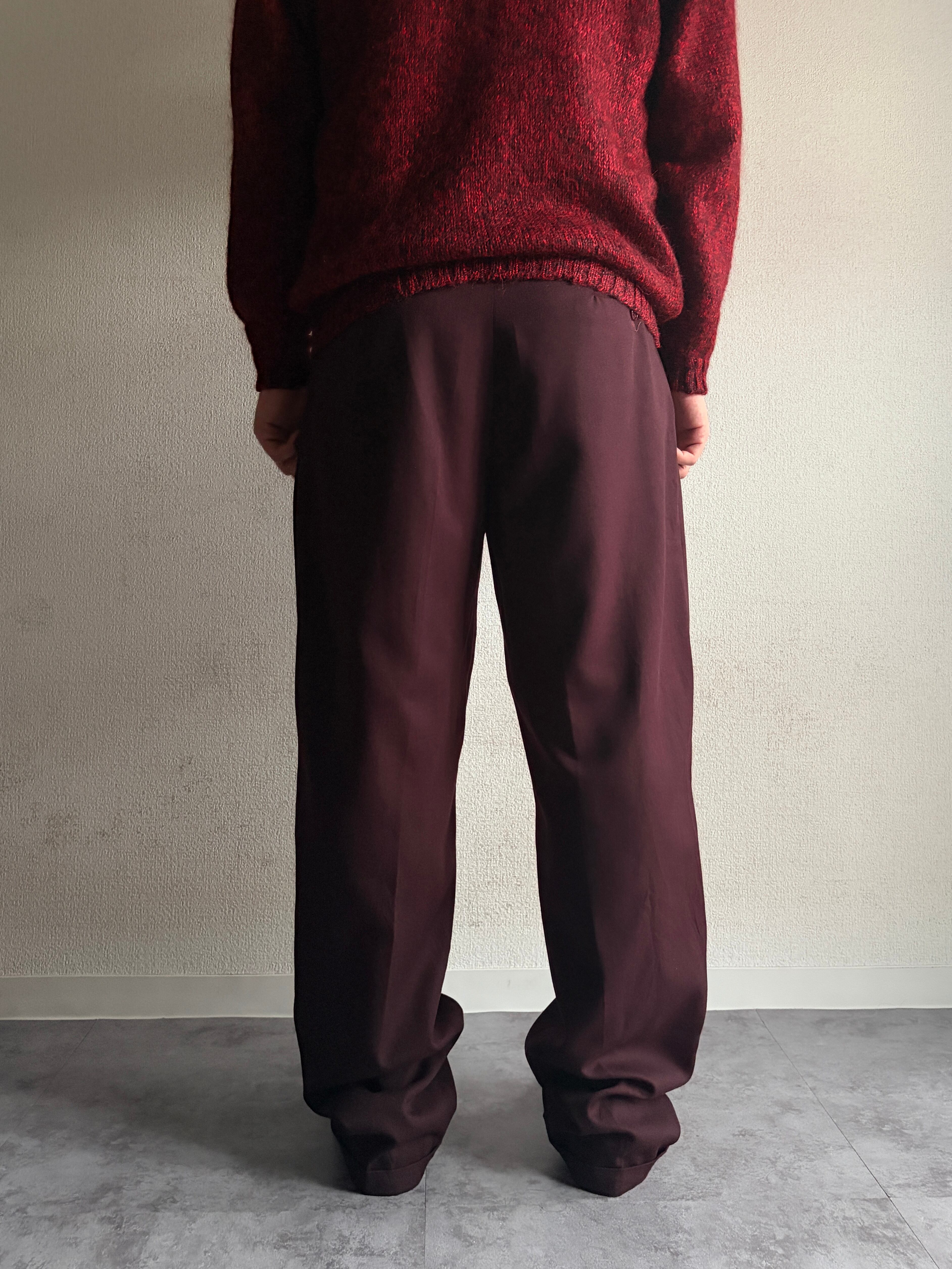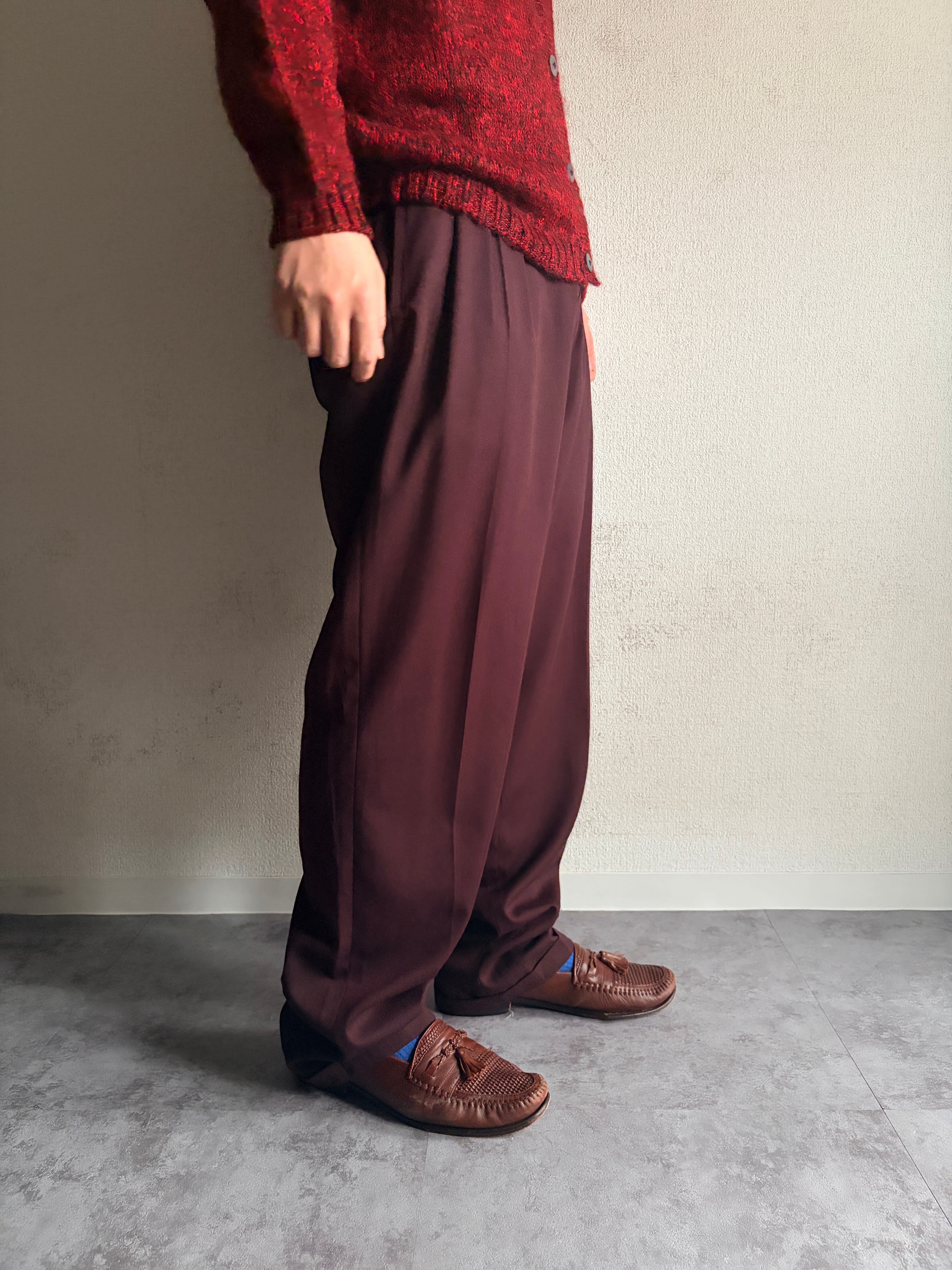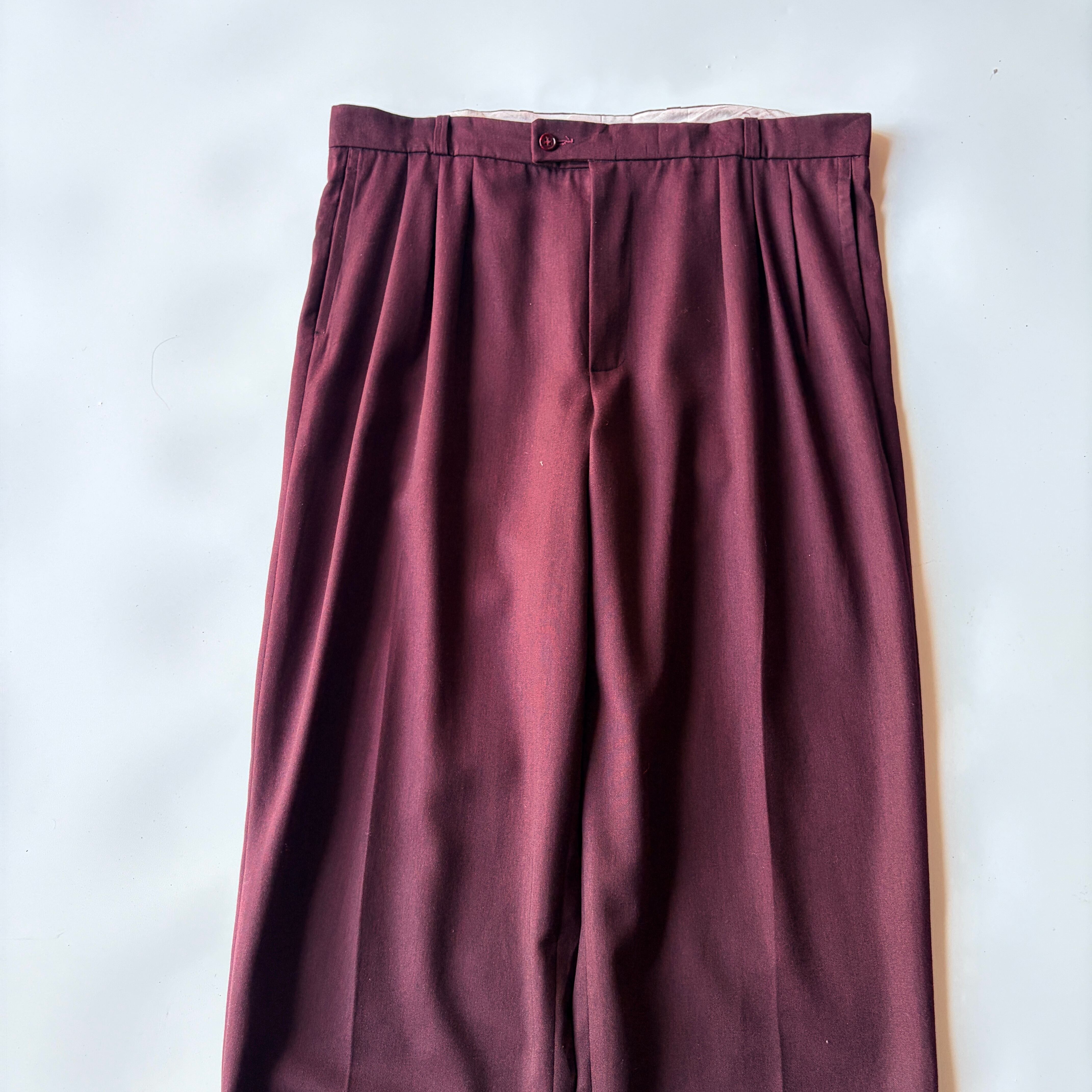 | 80s~| “ウールギャバ” Wine-Red” slacks / “ギャバジン”◎ / ワインレッド◎ / “2タック”ワイドレッグ