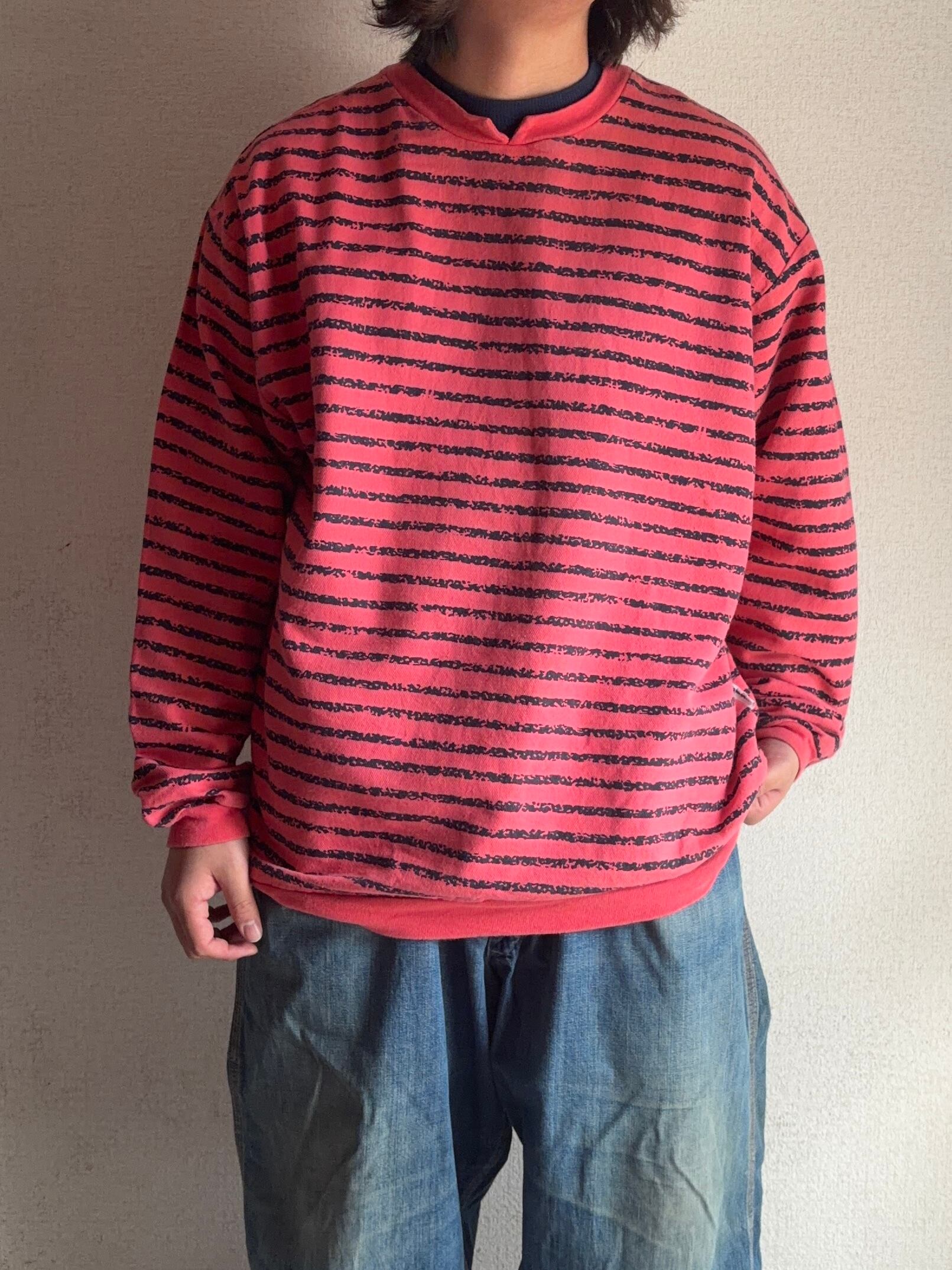 | 90s | Print border “サーフStyle” sweat / サーフ系◎ / プリントボーダー◎ / サーモンピンク◎